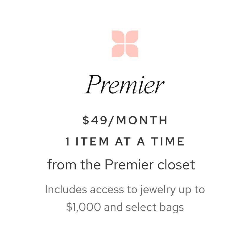 Premier provides members with the option to borrow jewelry with a retail price up to $1,000 or select handbags for just $49/month.